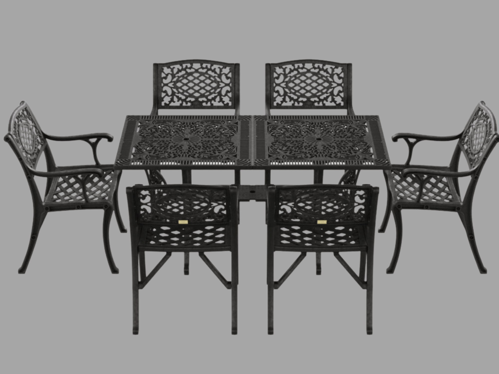 Ferforje Dikdörtgen Masa + 6 Cunda Sandalye