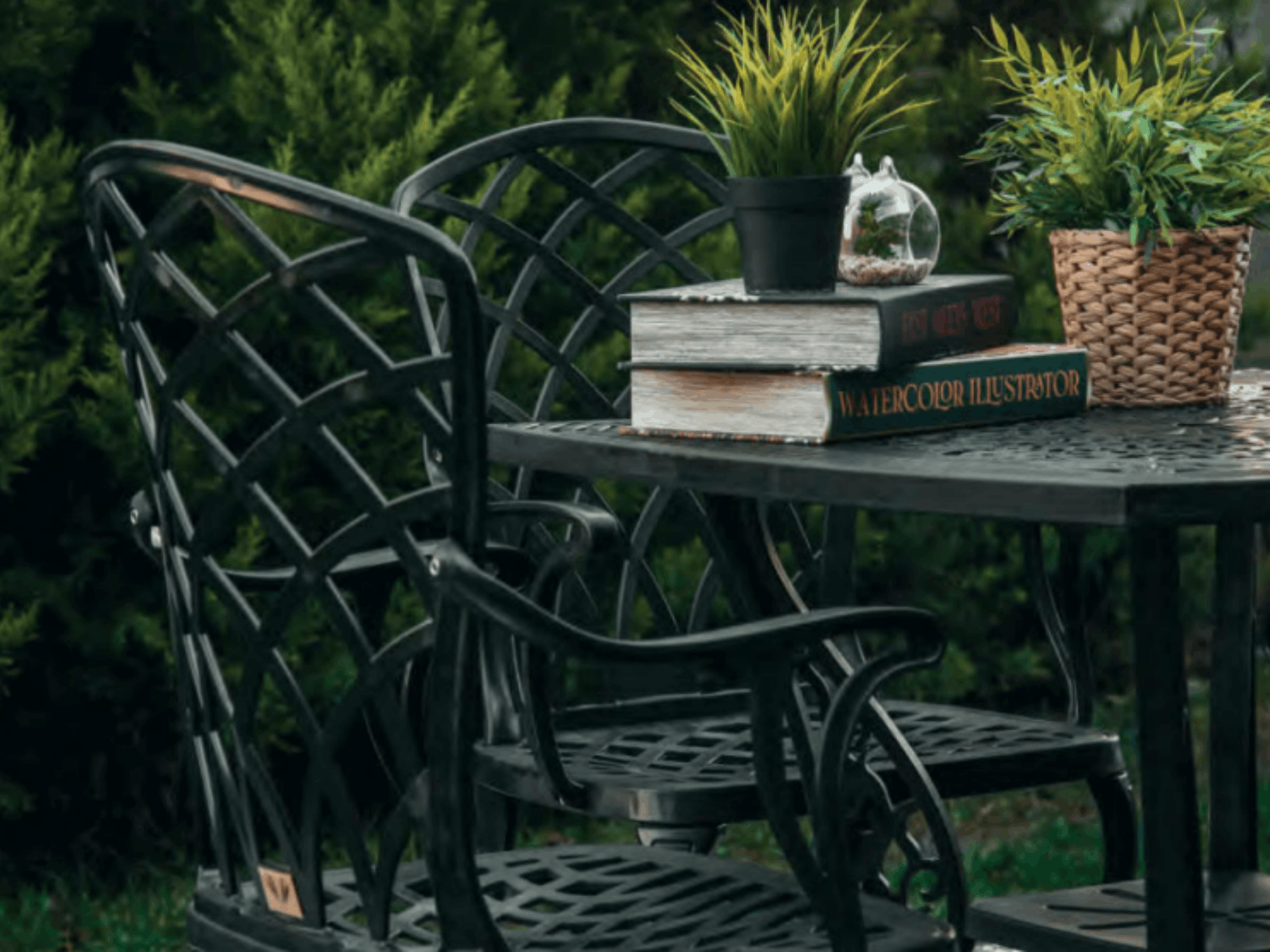 Ferforje Kare Masa + 4 Hitit Sandalye