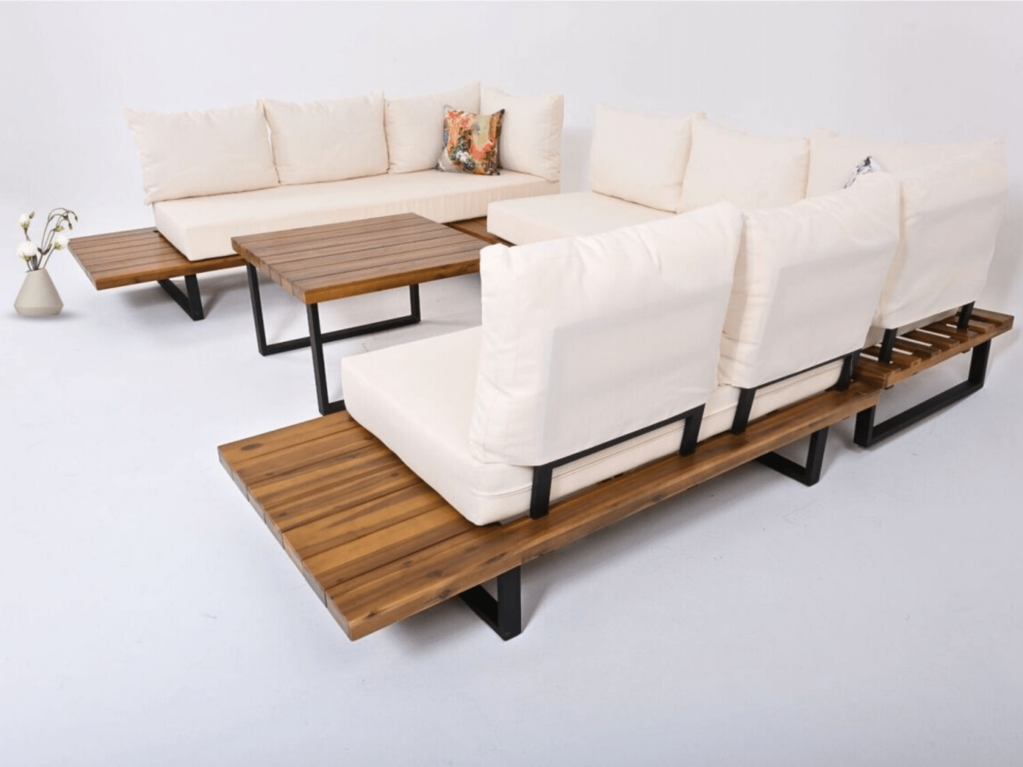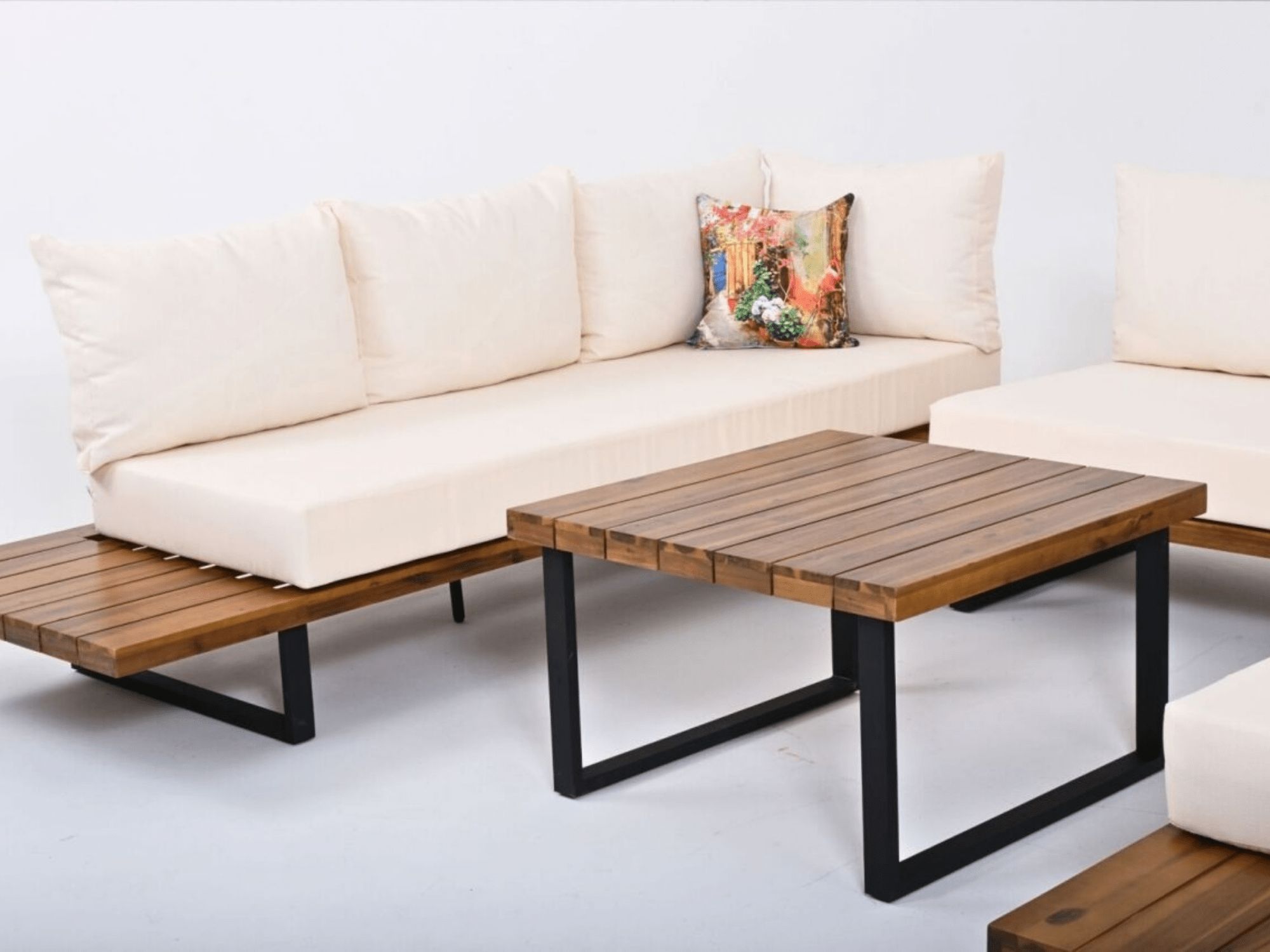 Alüminyum iskelet ve %100 Akasya ahşap kullanılarak imal edilmiştir.